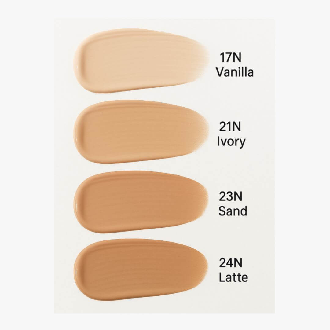 Wasser, Cyclopentasiloxan, Titandioxid (CI 77891), Trimethylsiloxysilikat, Propandiol, Eisenoxide (CI 77492), Isododecan, Diphenylsiloxyphenyltrimethicon, Methyltrimethicon, Niacinamid, PEG-10 Dimethicon, Dimethicon, Octyldodecanol, Polyglyceryl-3 Polydimethylsiloxyethyldimethicon, PEG/PPG-18/18 Dimethicon, 1,2-Hexandiol, Haematococcus Pluvialis Öl, Hibiscus Sabdariffa Blütenextrakt, Rosa Rugosa Blütenextrakt, Pancratium Maritimum Extrakt, Nymphaea Alba Blütenextrakt, Propolis-Extrakt, Magnesiumsulfat, Disteardimoniumhectorit, Aluminiumhydroxid, Stearinsäure, Polyhydroxystearinsäure, Triethoxycaprylylsilan, Aluminiumoxid, Polyglyceryl-4-Isostearat, Isopropyltitantriisostearat, Neopentylglykoldiethylhexanoat, Adenosin, Trinatriumethylendiamindisuccinat, Polymethylmethacrylat, Butylenglykol, Glycerin, Dipropylenglykol, Natriumpalmitoylprolin, Cetearyldimethicon/Vinyldimethicon-Crosspolymer, Astaxanthin, Kaliumsorbat, Duftstoffe (Parfum), Eisenoxide (CI 77491), Eisenoxide (CI 77499).